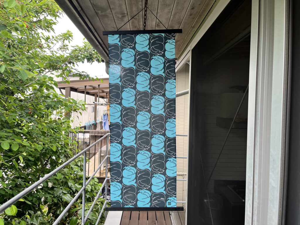 こちらの手ぬぐいは『手捺染』という製法で制作しております。